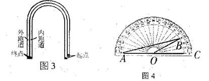 10.在一次学校运动会上,如图3是赛跑跑道的一部分,它由两条直道和中间半圆形弯道组成,若内、外两条跑道的终点在一直线上,则外跑道的起点必须前移,才能使两跑道有相同的长度.如果跑道宽为l.22米,则外跑道的起点应前进(