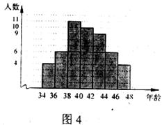 5.如图4,是某单位职工年龄的频数分布直方图(统计中采用“上限不在内”的原则,如年龄为36岁统计在