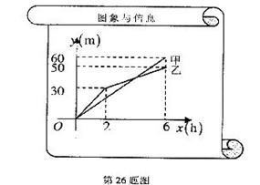 26.(本小题满分14分)有两段长度相等的河渠挖掘任务,分别交给甲、乙两个工程队同时进行挖掘.下图是反映所挖河渠长度y (米)与挖掘时间