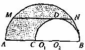 12.如图,已知大半圆⊙O1与小半圆⊙O2相内切于点B,大半圆的弦MN切小半圆于点D,若MN//AB,当MN=4时,则此图中的阴影部分的面积是 。