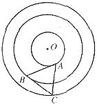 19.如图,已知三个同心圆,等边三角形ABC的三个项点分别在三个圆上,请你先把这个三角形绕着点O顺时针旋转120度,再说明旋转的结果。