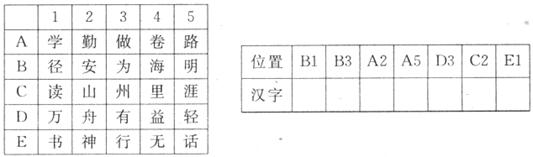 10.如图:方格中有25个汉字,“州”的位置用C3表示,请你将下图中的位置代码翻译成汉字。