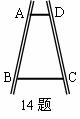 14.如图,为一“梯形”木架,AD=0.4m,BC=0.8m,现在要在AD与BC之间均匀地加上三根横木档,做成一个五阶的木梯,则新加的三根横木档的总长为 m。