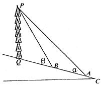 17.如图:某地区中国移动公司在山坡上建一个发射塔PQ,已知山坡的倾斜角为30度,坡上由两点A、 B测得塔顶P的夹角为α=30度和β=45度,且AB=20m.请你根据此题条件求发射塔的高度.(精确到0.01)(参考数据:si n30°=