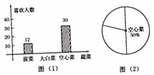 如图,图(1)是某中学初三(A)班全体学生对三种蔬菜的喜欢人数的频数分布直方图,解答下列问题: