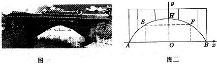 17.廊桥(如图一)是我国古老的文化遗产,如图二是某座抛物线型的廊桥示意图,跨度AB=40米,桥架的拱高OH为l0米,为保护廊桥的安全,在该抛物线上距水面AB高为8米的点E、F处要安装两盏警示灯,则这两盏灯的水平距离EF=__________米.