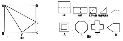 7.如图4所示,把一个正方形三次对折后沿虚线剪下,则展开后所得的图形是( )