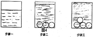步骤二:将三个相同的玻璃球放入水中,结果水没有满;