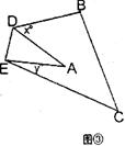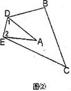 (2)把图①△ABC沿DE折叠,得到图②,填空:∠1+∠2 ∠B+∠C(填“>”“<”“=”),当∠A=40°时,∠B+∠C+∠1+∠2= 。
