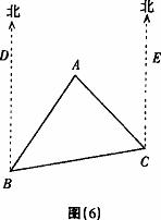 27.(6分)如图(6),A岛在B岛的北偏东30°方向,C岛在B岛的北偏东80°方向,A岛在C岛北偏西40°方向。从A岛看B、C两岛的视角∠BAC是多少?
