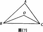 28.(8分)如图(7),在△ABC中,∠ABC、∠ACB的平分线交于点O。