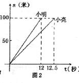 10.小明、小亮两人在一次赛跑中,路程与时间的关系如图2所示,下列说法中不正确的是