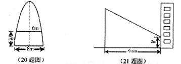 20.如图,某工厂大门是一抛物线形建筑物,大门地面宽8m,两侧距地面3m处各有一壁灯,两壁灯间的水平距离为6m,则大门高度为__________________.