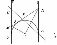 如图,已知直线y=-m(x-4)(m>0)与x轴、y轴分别交于A、B两点,以OA为直径作半圆,圆心为C.过A作x轴的垂线AT,M是线段OB上一动点(与O点不重合),过M点作半圆的切线交直线AT于N,交AB于F,切点为P.连结CN、CM.