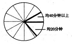 (3)若该校初中2008级共有240名同学,请估计其中每天(除课间操外)的课外锻炼时间不大于20分钟的人数,并根据调查情况向学生会提出一条建议.(注:扇形图中相邻两虚线的圆心角为30°)(6分)