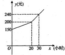 小时,该月可得(即下月他可获得)的总费用为y元,则y(元)和
