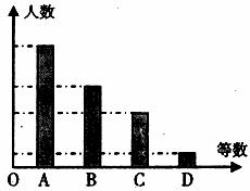某校对九年级学生进行“综合素质”评价,评价的结果分为A(优)、B(良)、C(合格)、D(不合格)四个等级.现从中随机抽测了若干名学生的“综合素质”等级作为样本进行数据处理,并作出如图所示的统计图.已知图中从左到右四个长方形的高的比为14:9:6:l,评价结果为D等级的有2人.请你回答以下问题: