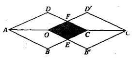 15.如图,点O是AC的中点,将周长为4cm的菱形ABCD沿对角线AC方向平移AO长度得到菱形OB’C’D’,则四边形OECF的周长是________________cm.
