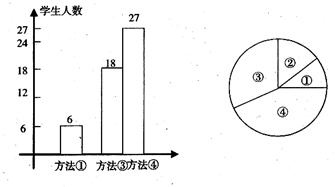 (1)请将条形统计图补充完整,并计算扇形统计图中方法③的圆心角.(4分)