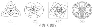 8.如图所示,下列四个图形都可以分别看成由一个“基本图案”经过旋转形成,则它们中旋转角相同的图形为( ).