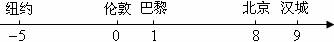 2.2008年8月第29届奥运会将在北京开幕,5个城市的国标标准时间(单位:时)在数轴上表示如图所示,那么北京时间2008年8月8日20时应是( )