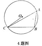 4.如图,在⊙O中,∠A=60º,则∠OCB等于度?( )