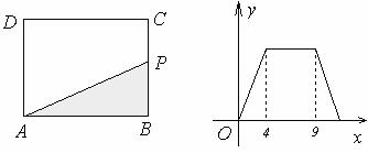 10、如图1,在矩形ABCD中,动点P从点B出发,沿BC、CD、DA运动至点A停止,设点P运动的路程为x,△ABP的面积为y,如果y关于x的函数图象如图2所示,则△ABC的面积是( )