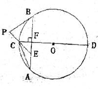 (2)延长EC到点P,连结PB,若PB=PE,试判断PB与⊙O的位置关系,并说明理由。