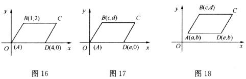 (3)通过对图16,17,18,19的观察和顶点C的坐标的探究,你会发现:无论平行四边形ABCD处于直角坐标系中哪个位置,当其顶点坐标为A(