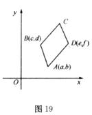 (2)在图19中,给出平行四边形ABCD的顶点A,B,D的坐标(如图所示),求出顶点C的坐标(C点坐标用含a,b,c,d,e,f的代数式表示);