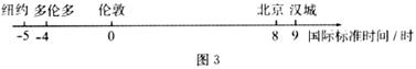 5.图3是5个城市的国际标准时间(单位:时),那么北京时间2007年6月17 日上午9时应是