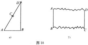 (2)现有一长方形木块的残留部分如图18b,其中AB,CD整齐且平行,BC,AD是参差不齐的毛边。请你在毛边附近用尺规画一条与AB,CD都垂直的边(不写作法,保留作图痕迹)。
