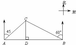 某大草原上有一条笔直的公路,在紧靠公路相距40千米的A、B两地,分别有甲、乙两个医疗站,如图,在A地北偏东45°、B地北偏西60°方向上有一牧民区C.一天,甲医疗队接到牧民区的求救电话,立刻设计了两种救助方案,方案I:从A地开车沿公路到离牧民区C最近的D处,再开车穿越草地沿DC方向到牧民区C.方案II:从A地开车穿越草地沿AC方向到牧民区C.已知汽车在公路上行驶的速度是在草地上行驶速度的3倍.