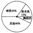 5.下图是某中学七年级学生参加课外活动人数的扇形统计图,若参加舞蹈类的学生有42人,则参加球类活动的学生人数有( )
