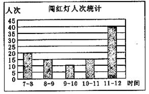 填空:(1)图(1)提供的五个数据(各时段闯红灯人次)的众数是 ;平均数是 。(2)估计一个月(按30天计算)上午7:00~12:00在该十字路口闯红灯的未成年人约有 人次。