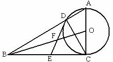 交AB于点D,点E是BC的中点,OB、DE交于点F。