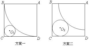 27.在一次数学探究性学习活动中,某学习小组要制作一个圆锥体模型,操作规则是:在一块边长为16cm的正方形纸片上剪出一个扇形和一个圆,使得扇形围成圆锥的侧面时,圆恰好是该圆锥的底面.他们首先设计了如图所示的方案一,发现这种方案不可行,于是他们调整了扇形和圆的半径,设计了如图所示的方案二.(两个方案的图中,圆与正方形相邻两边及扇形的弧均相切.方案一中扇形的弧与正方形的两边相切)