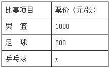 (1)其中观看男篮比赛的门票有 张;观看乒乓球比赛的门票占全部门票的 %;