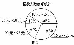 (1) 从图1中可以看出捐款金额在15-20元的人数有多少人?