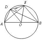12.如图所示,AB是⊙O的直径,AD=DE,AE与BD交于点C,则图中与∠BCE相等的角有 ( )