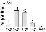 13.台州市某中学随机调查了部分九年级学生的年龄,并画出了这些学生的年龄分布统计图(如图),那么,从该校九年级中任抽一名学生,抽到学生的年龄是16岁的概率是 .