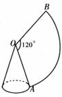 18.如图,有一圆心角为120 o、半径长为6cm的扇形,若将OA、OB重合后围成一圆锥侧面,那么圆锥的高是( )