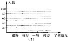(1)补全扇形统计图,并计算这200名学生中对安全知识了解“较好”、“很好”的总人数。(2)在图(2)中,绘制样本频数的条形统计图。