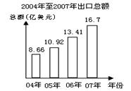 12.近年来,义乌市对外贸易快速增长.下图是根据我市2004年至2007年出口总额绘制的条形统计图,观察统计图可得在这期间我市年出口总额的极差是 亿美元.