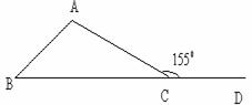 6、如下图,∠ACD=1550,∠B=350,则∠A= 度。
