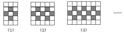 18. 用同样规格的黑白两种颜色的正方形瓷砖按下图的方式铺地板,则第(3)个图形中有黑色瓷砖 块,第