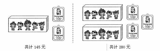 20.(本大题满分10分)某商场正在热销2008年北京奥运会吉祥物“福娃”玩具和徽章两种奥运商品,根据下图提供的信息,求一盒“福娃”玩具和一枚徽章的价格各是多少元?