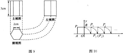 17.现为如图9所示是某种型号的正六角螺母毛坯的三视图,则它的表面积为 cm2。