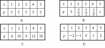 3、下面的表格分别给出了变量x与y之间的对应关系,y与x是反比例函数的是( )![]()