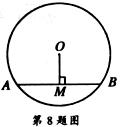 8.如图,⊙O的直径为10,圆心O到弦AB的距离OM为3,则弦AB的长是:
